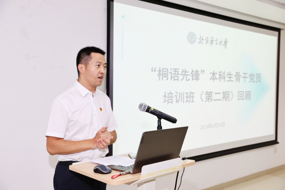 6月20日,北京语言大学毕业生廉洁主题报告暨第二期“桐语先锋”本科生骨干党员培训班结业仪式在综合楼清常厅举行。党委副书记、纪委书记罗建晖出席结业仪式并为毕业生作了廉洁主题报告,党委学工部部长武玉洲,纪委办公室副主任、监督检查室主任吴柯、学工部副部长袁胤婷以及第二期“桐语先锋”骨干党员培训班全体成员参加活动。活动由学工部副部长袁胤婷主持。