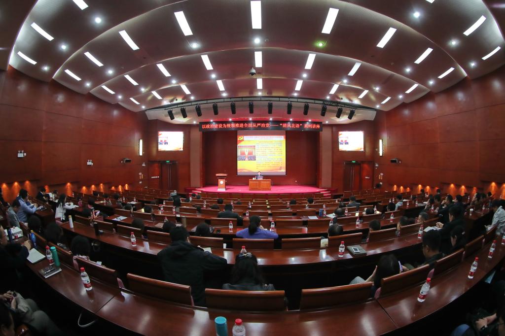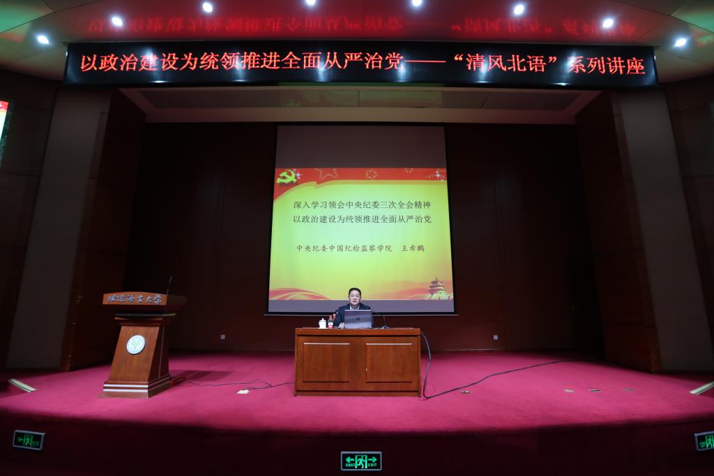 4月2日,在逸夫报告厅,中央纪委中国纪检监察学院副研究员、法学博士王希鹏老师以“深入学习领会中央纪委三次全会精神,以政治建设为统领推进全面从严治党”为题,为我校党员干部作专题辅导报告。学校中层以上干部、全体教职工党支部书记听取了辅导报告。