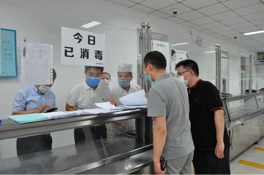 6月16日下午,张宝钧副校长一行深入学校西区便民菜店、友谊副食店、第三食堂、小菜站等地检查疫情防控工作。