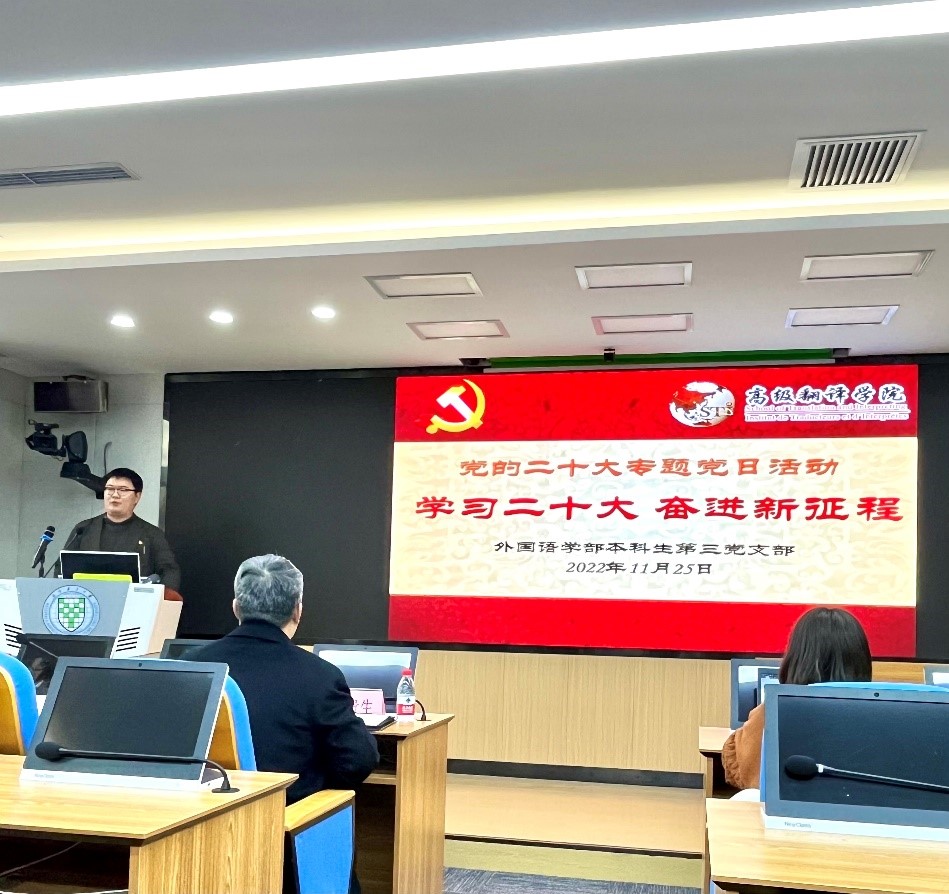 为提升支部党员理论水平,号召广大党员深入学习党的二十大精神,11月25日,外国语学部本科生第三党支部举办了“奋进新时代”党的二十大专题学习党日活动。校党委副书记、纪委书记马贵生,学部党委副书记刘洁参加了本次党日活动。