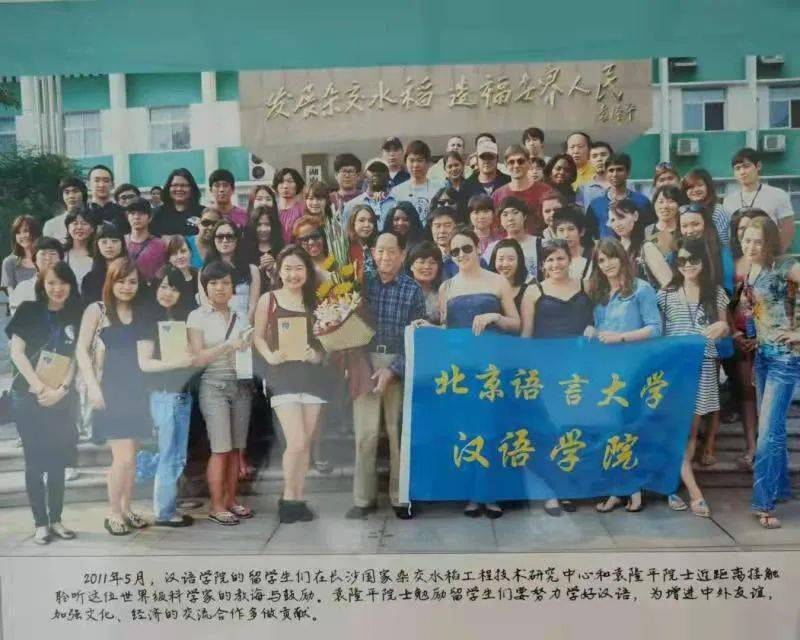 2011年5月,北京语言大学汉语学院的留学生们在长沙国家杂交水稻工程技术研究中心和袁隆平院士近距离接触,聆听这位世界级科学家的教诲与鼓励。袁隆平院士勉励留学生们努力学好汉语,为增进中外友谊,加强文化、经济的交流合作多做贡献。