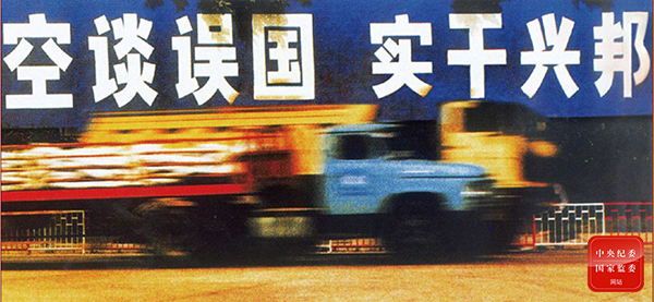 南方谈话后,深圳蛇口工业区竖起“空谈误国,实干兴邦”标语牌。