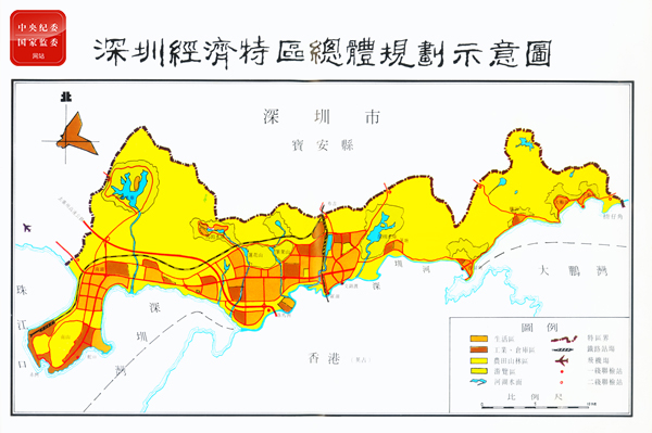 图为1982年10月,深圳市城市规划局编制的《深圳经济特区总体规划示意图》