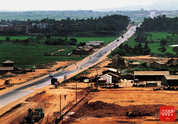 图为深圳经济特区创办之初的深南路与如今的深南大道前后对比