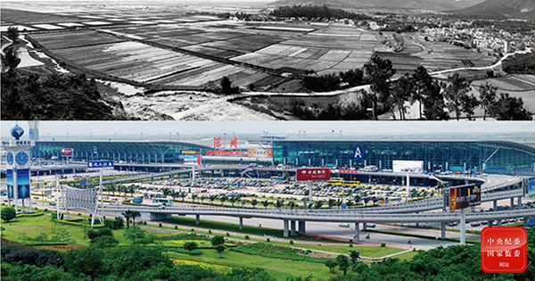 1994年深圳机场完成集团化改造,正式成立深圳市机场(集团)有限公司。图为深圳机场建设前后对比。