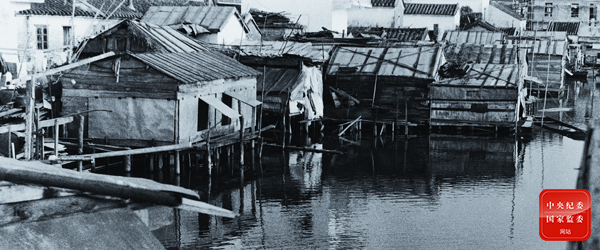 图为上世纪70年代,原宝安县渔民村破败的水上人家。