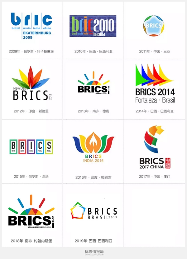 历届金砖会议logo(来源:标志情报局)