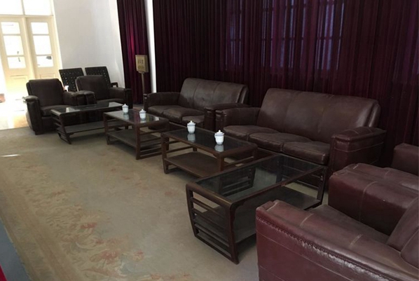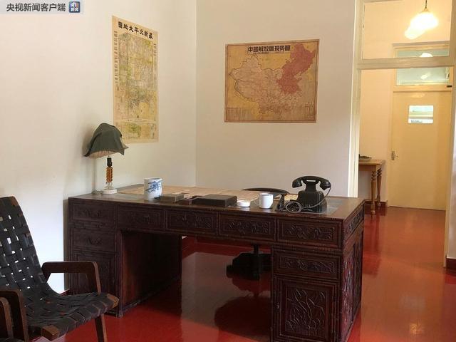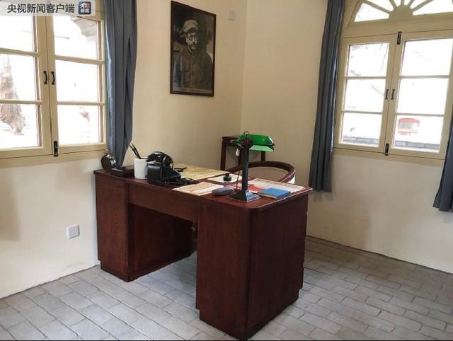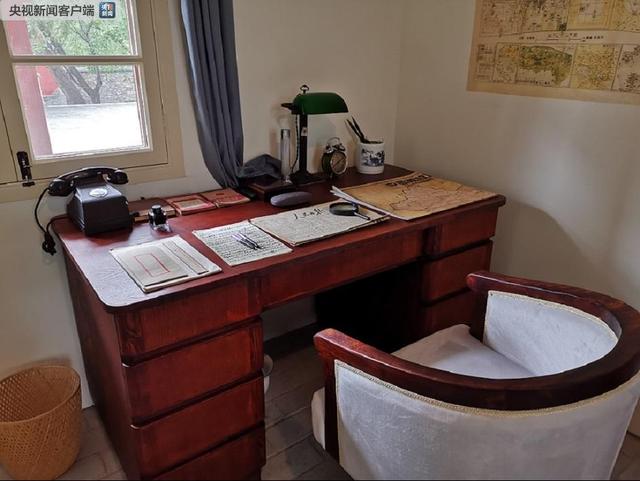 会客厅东侧是办公室。墙上挂着《中国解放区现势图》《最新北平大地图》。桌子上的老式电话、台灯、笔墨等仍照当时面貌陈列。就是在这张普通的桌子上,毛泽东用他的如椽巨笔,写下了《南京政府向何处去?》《论人民民主专政》等一个又一个重要文件,勾勒出中国960万平方公里大地的美好蓝图。