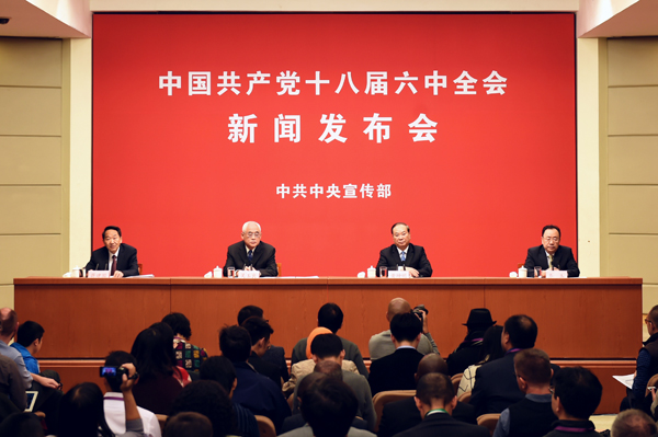 2016年10月28日(星期五)下午3时,中央宣传部举行新闻发布会,请中央纪律检查委员会、中央组织部、中央宣传部负责同志介绍中国共产党十八届六中全会情况,并答记者问。