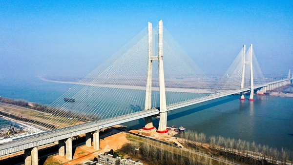 2021年12月30日,京港高铁安庆至九江段开通运营,合肥至南昌实现高铁直通。至此,中国高铁运营里程突破4万公里。图为动车组列车行驶在鳊鱼洲长江大桥上。 (图片来源:人民视觉)