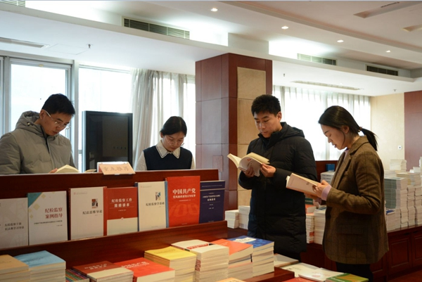 图为近日,中国纪检监察学院的学员在翻阅纪检监察相关业务图书。马康 摄