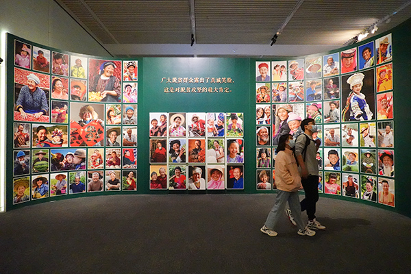 在迎来中国共产党成立100周年的重要时刻,我国脱贫攻坚战取得全面胜利,创造了又一个彪炳史册的人间奇迹。图为近日,观众在中国国家博物馆观看“希望的田野——脱贫攻坚共享小康全国摄影展”,该展览通过近180幅摄影作品,生动记录了脱贫攻坚取得的伟大成就。(图片来源:视觉中国)