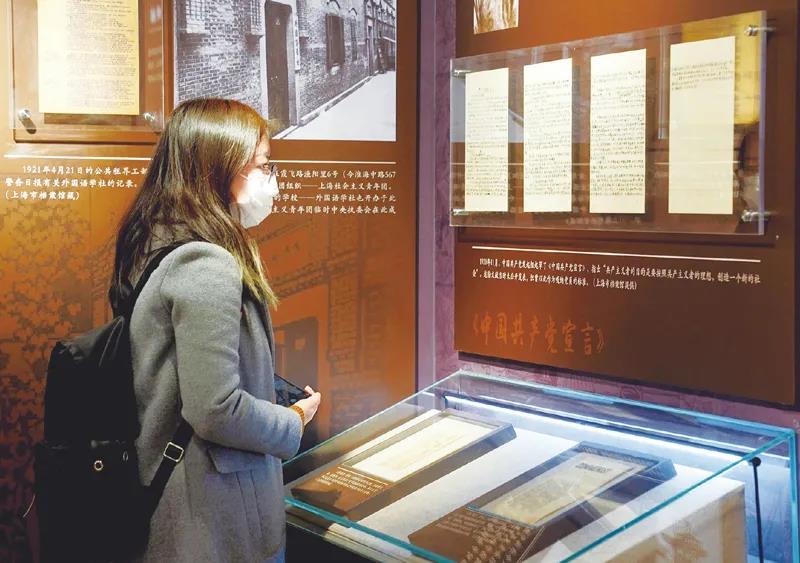2021年1月18日,“建党百年 初心如磐——长三角红色档案珍品展”在上海市档案馆外滩馆揭幕。本次展览展示了上海市、江苏省、浙江省、安徽省的20多家档案部门珍藏的近500件革命历史档案文献和影像资料。该展览将赴长三角地区的多个城市巡展。图为观众在参观展览。新华社记者 刘颖/摄