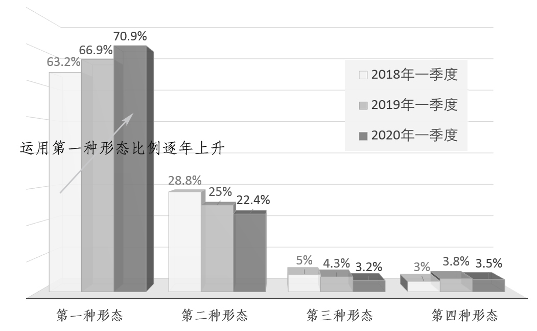 将2020年第一季度的数据与2018年、2019年同期数据相比较,全国纪检监察机关运用第一种形态的比例逐年上升,运用谈话函询处置问题线索的数量也在逐年增加。