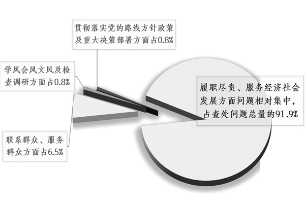 从发现问题情况看,个别区县查处问题数量偏少震慑作用不明显,发现难、监督难、查处弱、问责软的问题在不同地区依然存在。一些区县虽然查处了一些形式主义官僚主义问题,但给予党纪政务处分的不多,对形式主义官僚主义问题的认识程度和治理手段有待加强。